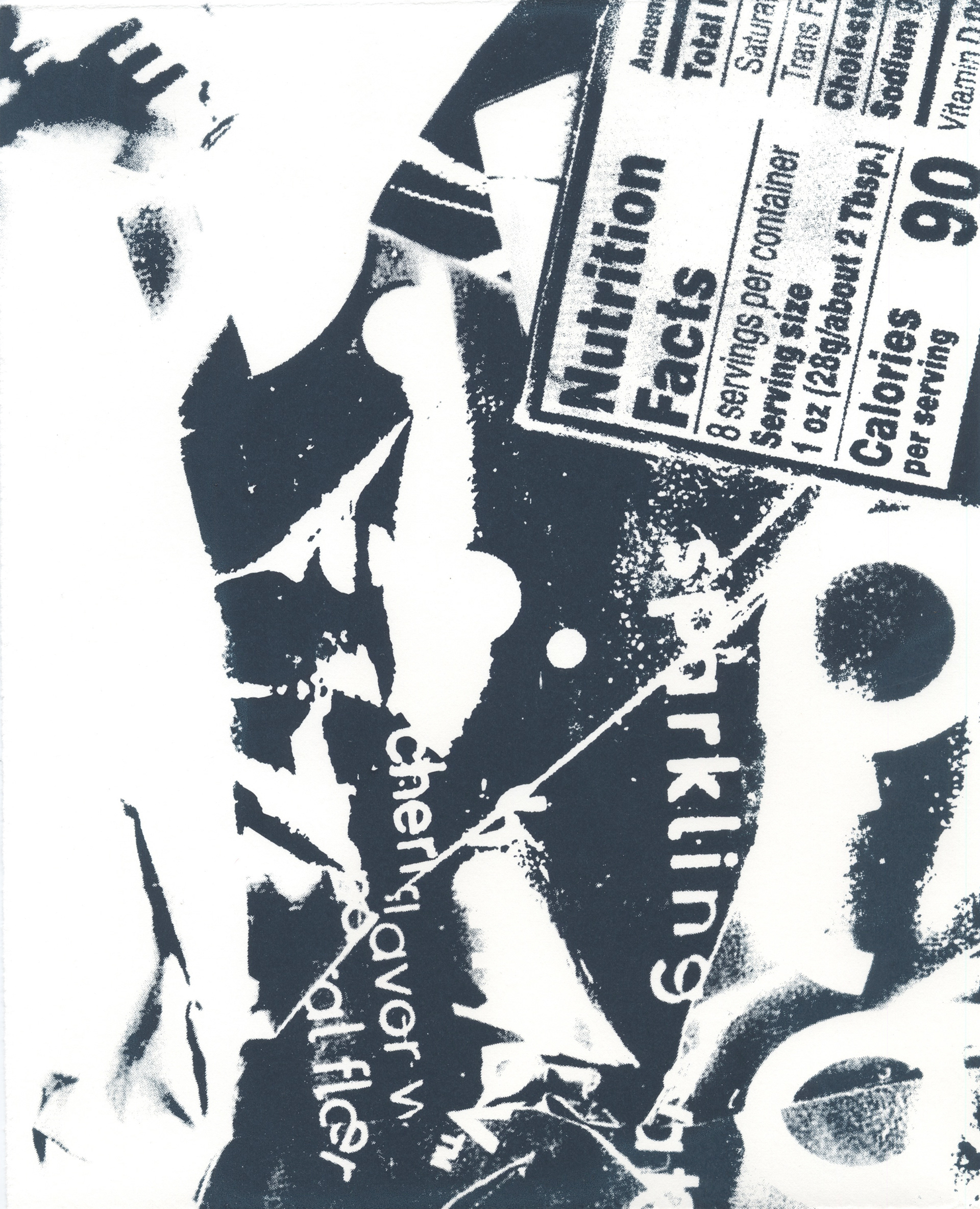 Consumers think of excess packaging as trash or recycled material as an out of sight, out of mind resolution, when this is not the final solution. A series of prints that deliver a learning experience for the audience with graphics to inform and educate the consumer on what happens to the excess of packaging thrown away or recycled every day. The imagery was created by scanning trash and making a digital collage and then screenprinting the images.